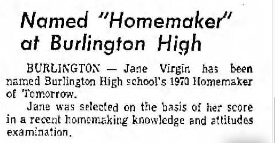 Who would have known that the original “Jane the Virgin” was from Burlington? 🙂 I hope she had a great career.